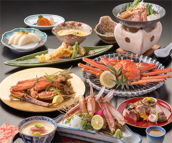 | 【宿泊】カニ会席 萬両(姿蟹1枚付) | 27,500円(税サ込)より | ご予約・詳細 ※ご利用日の3日前までに ご予約ください。 |
